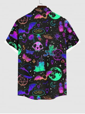 Chemise grande taille à imprimé tête de mort, chauve-souris, papillon, lune, étoile, galaxie, planète, champignon, Halloween, boutonnée, avec poche, pour homme - Noir - Noir