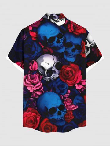 Homme> Chemise grande taille à imprimé tête de mort et roses pour homme, avec poches boutonnées et imprimé Halloween