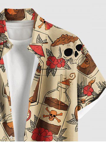 Chemise grande taille à imprimé tête de mort, fleur, citrouille, masque, Halloween, boutonnée, poche, pour homme - Café Lumière - M