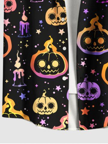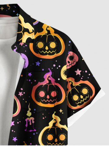 Chemise grande taille pour homme, imprimé citrouille, bougies, étoiles, boutons et poches - Noir - Noir