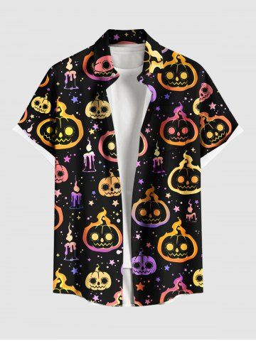 Homme> Chemise grande taille pour homme, imprimé citrouille, bougies, étoiles, boutons et poches