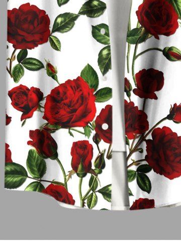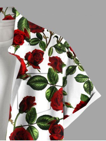 Chemise grande taille pour homme, imprimé roses et feuilles, avec boutons et poche, idéale pour la Saint-Valentin. - Rouge - Rouge