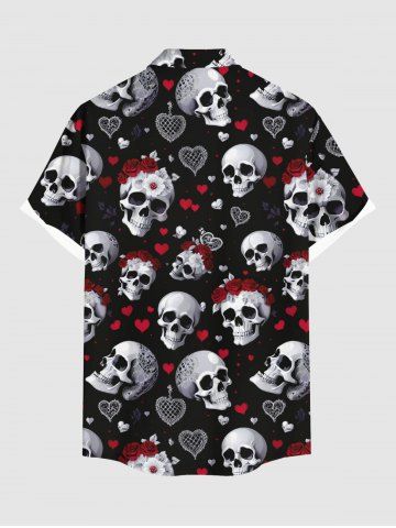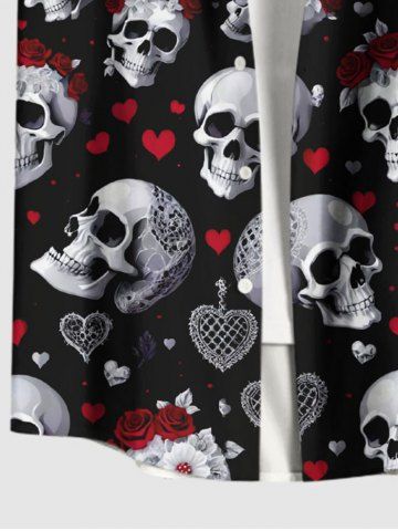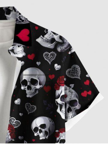 Chemise grande taille pour homme, imprimé têtes de mort, roses, cœurs et boutons, avec poche, idéale pour la Saint-Valentin. - Noir - Noir