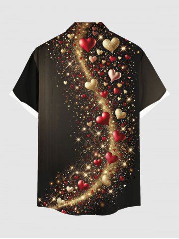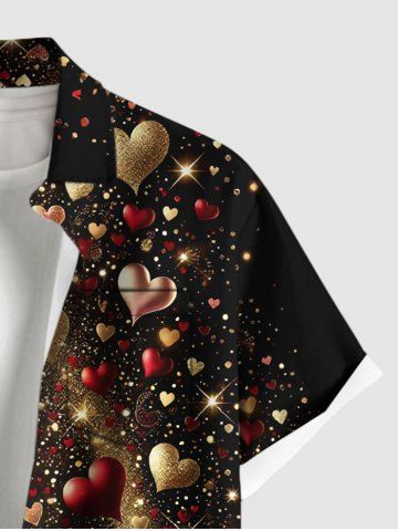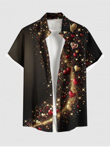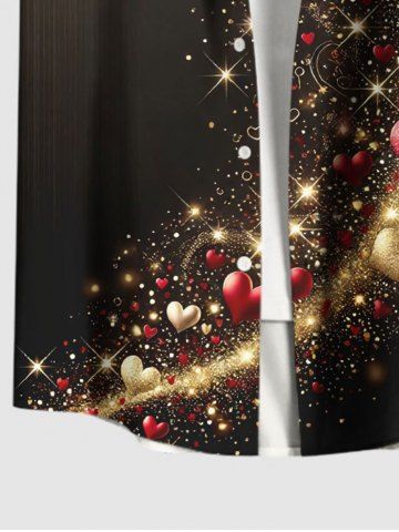Chemise grande taille pour homme, imprimée en 3D avec cœurs, étoiles et paillettes, à poches et boutons, idéale pour la Saint-Valentin. - Noir - Noir