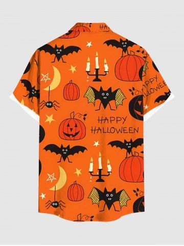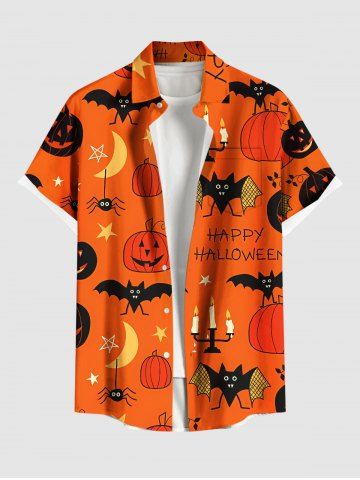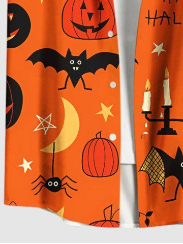 Homme> Chemise grande taille pour homme, motif citrouille, chauve-souris, lune, étoile, bougie, araignée, boutons et poches