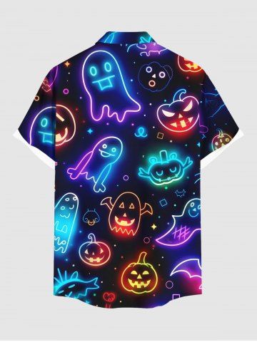 Chemise grande taille pour homme, motif citrouille d'Halloween, fantôme, néon, imprimé 3D, boutons et poches - Noir - Noir
