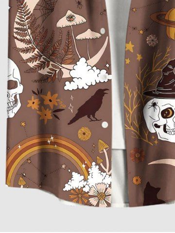 Chemise grande taille pour homme, motif citrouille, fantôme, crâne, fleurs, champignons, boutons et poches - Brun Légère - Marron Clair