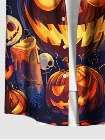 Homme> Chemise grande taille pour homme, motif citrouille, lanterne, chauve-souris, crânes, bougies, boutons et poches