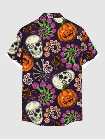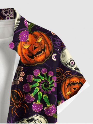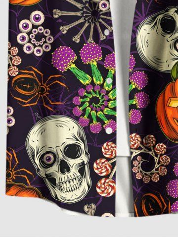 Homme> Chemise grande taille pour homme, motif tête de mort, citrouille, fleurs, araignée, boutons et poches