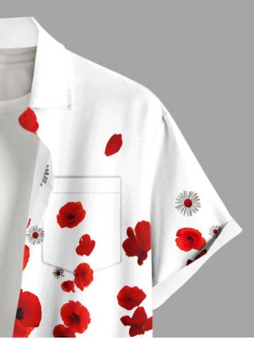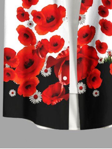 Chemise hawaïenne grande taille pour homme, à imprimé colorblock de marguerites, boutons et poche. - Rouge - Rouge