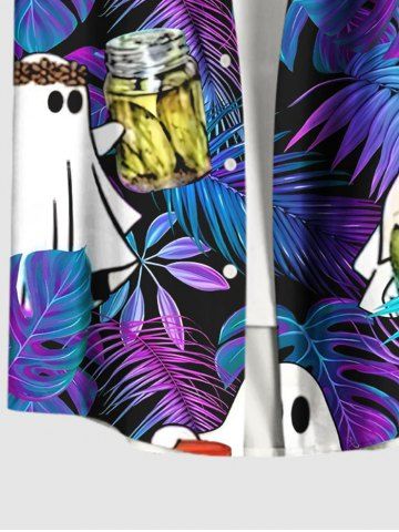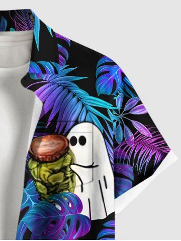 Homme> Chemise hawaïenne grande taille pour homme, imprimé bouteille, fantôme, feuilles tropicales, boutons et poches