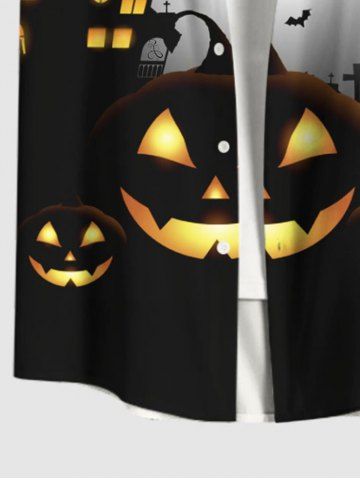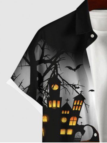 Chemise Imprimé Château Arbre Lune et Citrouille Halloween Grande Taille avec Poches - Noir - Noir