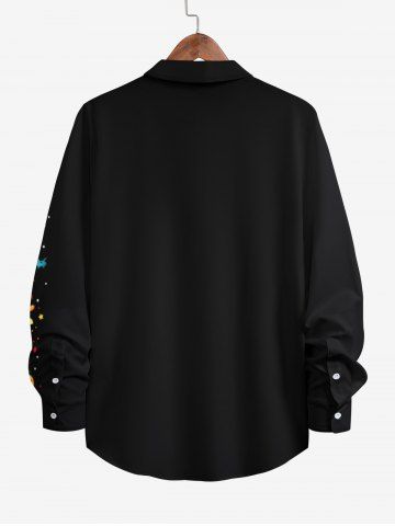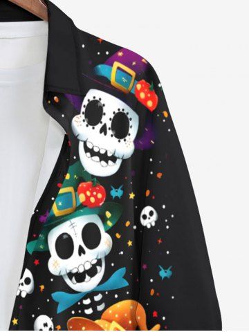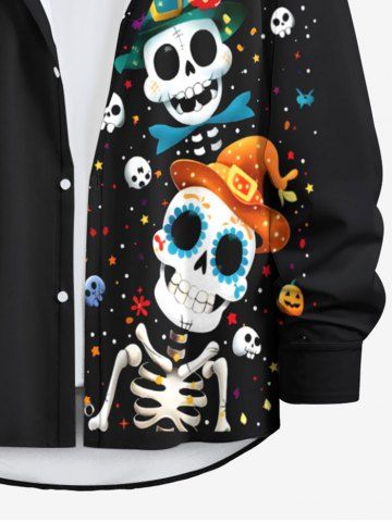 Chemise Imprimé Citrouille Squelette et Fleurs à Boutons Grande Taille à Manches Longues pour Homme - Noir - Noir