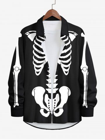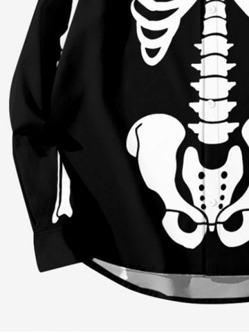 Chemise Imprimé Squelette à Boutons à Manches Longues Grande Taille pour Homme - Noir - Noir