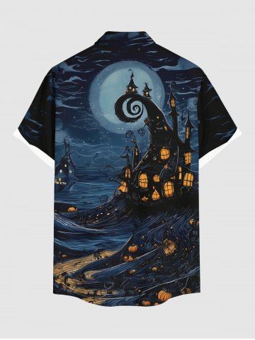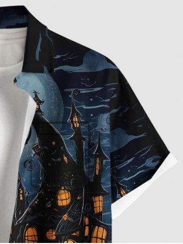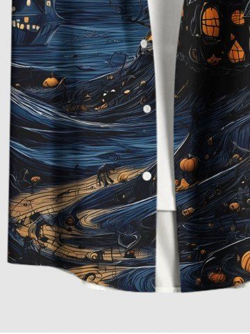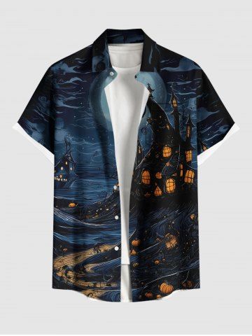 Plus Size Halloween Pumpkin Lantern Moon Print Buttons Pocket Shirt For Men - Noir - Noir
