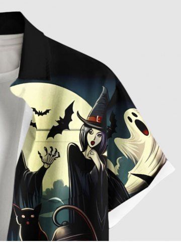 Homme > Plus Size Pumpkin Lantern Skull Wizard Ghost Bat Moon Print Halloween Button Pocket Shirt For Men