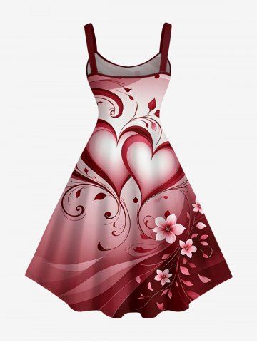 Robe trapèze grande taille à imprimé floral et cœur, dégradé Saint-Valentin - Rouge Cerise - L