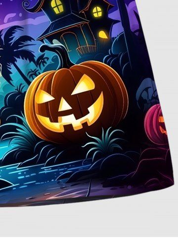 Homme> Short de plage grande taille pour homme, imprimé citrouille, chauve-souris, cocotier, lune, château, cordon de serrage, poche