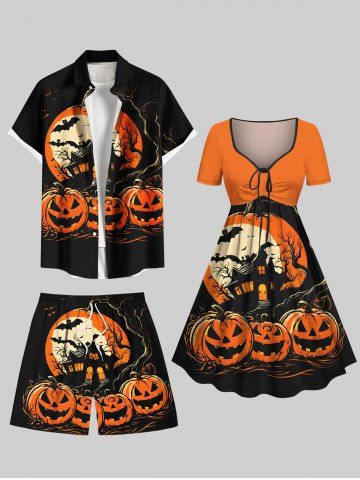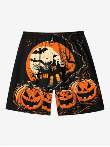 Homme> Short de plage grande taille pour homme, imprimé citrouille, lune, chauve-souris, arbre, Halloween