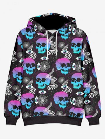 Sweat à Capuche D'Halloween Crâne Galaxie Imprimés Grande Taille avec Poche à Manches Longues à Cordon - Noir - Noir