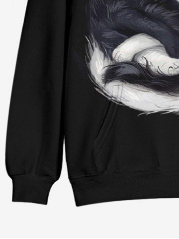 Sweat à Capuche Homme Imprimé Chat à Deux Tons avec Poche Kangourou Grande Taille - Noir - Noir