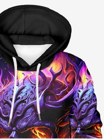 Sweat à Capuche Imprimé Crâne Brûlant D'Halloween en Métal Grande Taille avec Poche - Noir - Noir