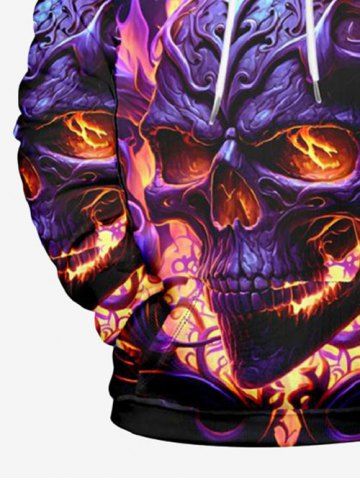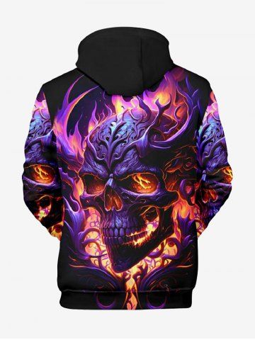 Homme> Sweat à Capuche Imprimé Crâne Brûlant D'Halloween en Métal Grande Taille avec Poche