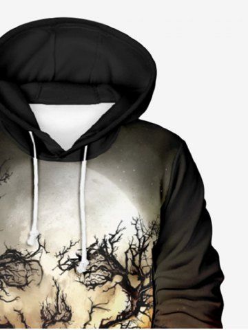 Sweat à Capuche Imprimé Crâne et Arbre Sous la Lune Halloween Grande Taille avec Poche pour Homme - Noir - Noir
