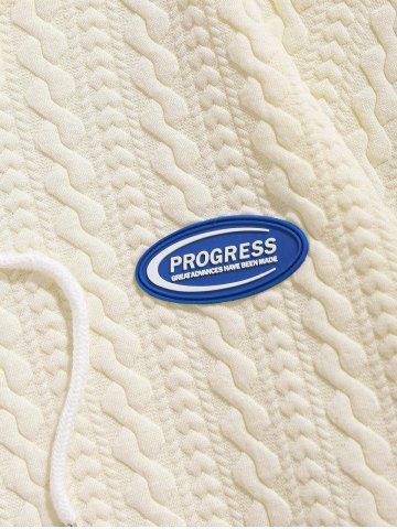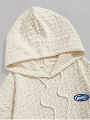 Sweat à Capuche Décontracté Texturé Lettre Poche en Avant Design à Manches Longues - Café Lumière - L