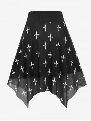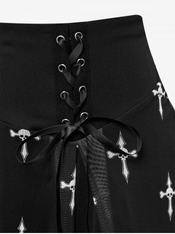Jupe D'Halloween Superposée Crâne Imprimée en Maille de Grande Taille à Lacets - Noir - Noir