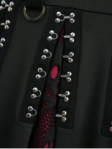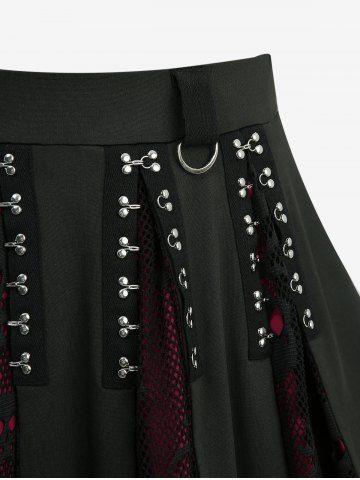 Jupe patchwork ajourée à têtes de mort en résille avec fermeture à agrafes - Noir - Noir