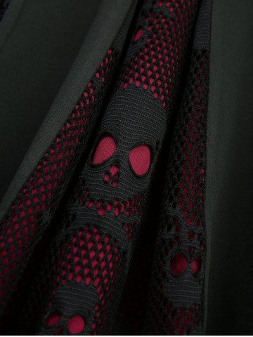 Jupe patchwork ajourée à têtes de mort en résille avec fermeture à agrafes - Noir - Noir