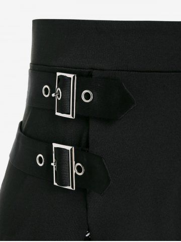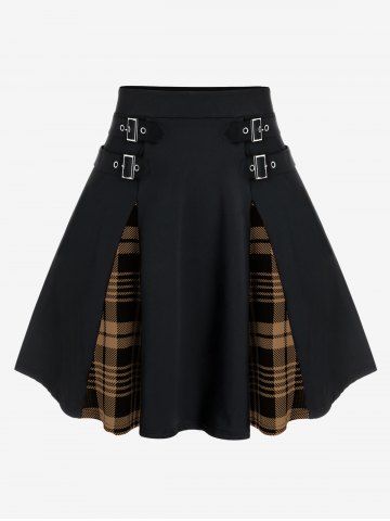Plus Size Gothic Plaid Buckles High Waisted A Line Mini Skirt
