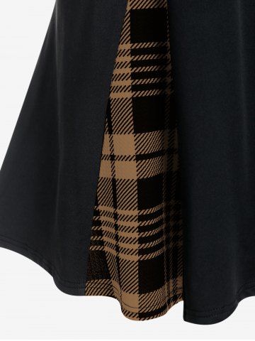 Mini-jupe trapèze taille haute à carreaux gothiques grande taille - Café - Café