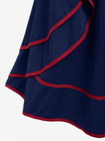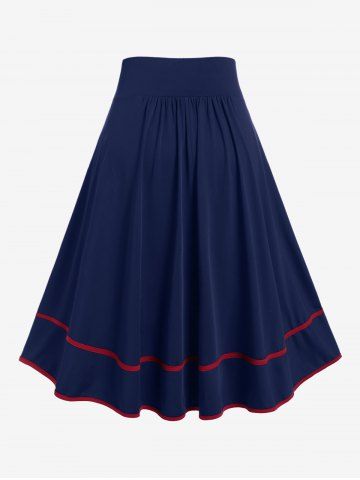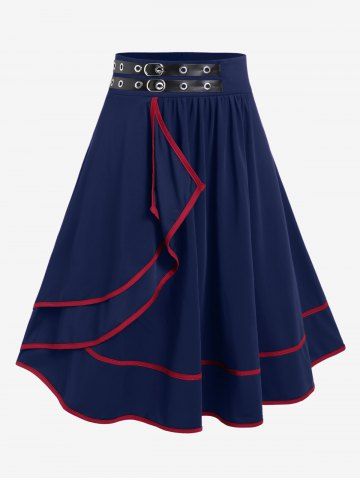 T*****y5Plus Size PU Contrast Tape Grommet Buckle Ruffles Ruched Midi A Line SkirtColor: BLACK Size: 1X | US 14-16Plus Size Contrast Tape Buckled Midi A Line Skirt - Black - 1x | Us 14-16 (2)beautiful black lined red.midi a has a red line running on areas will match w red black