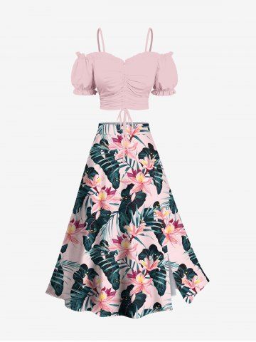 t*****r5Tropical Flower Leaf Print Plus Size Matching Hawaii Beach Outfit For CouplesColor: LIGHT PINKThis out if looks great. Not crazy about the fabric of the top but it will work. The skirt is perfect