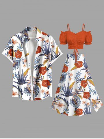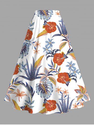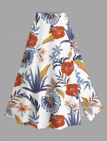 Jupe fendue hawaïenne à imprimé feuilles tropicales et fleurs d'hibiscus grande taille - Blanc - Blanc