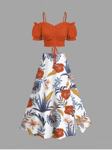 Jupes Graphiques > Jupe fendue hawaïenne à imprimé feuilles tropicales et fleurs d'hibiscus grande taille