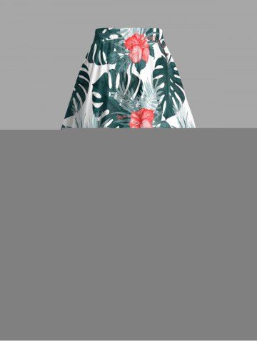 Jupe hawaïenne fendue à imprimé de feuilles tropicales et fleurs d'hibiscus grande taille - Vert Profond - S