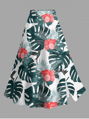 Jupes Graphiques > Jupe hawaïenne fendue à imprimé de feuilles tropicales et fleurs d'hibiscus grande taille