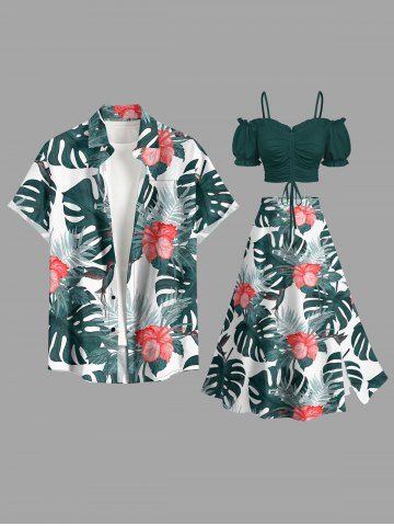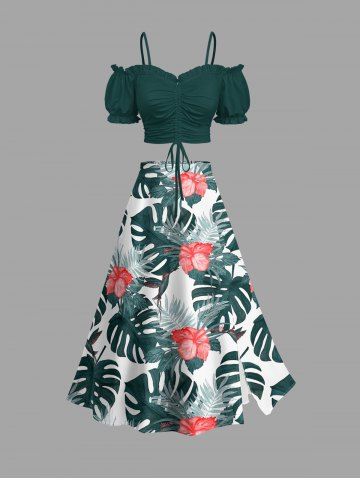Jupe hawaïenne fendue à imprimé de feuilles tropicales et fleurs d'hibiscus grande taille - Vert Profond - 6x