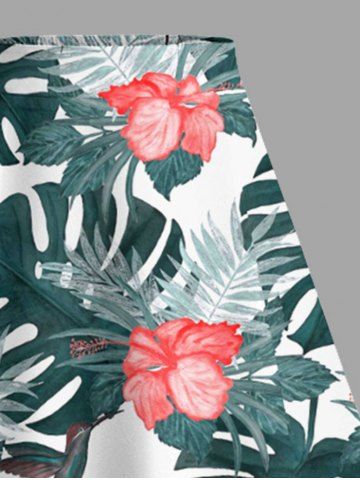 Jupes Graphiques > Jupe hawaïenne fendue à imprimé de feuilles tropicales et fleurs d'hibiscus grande taille