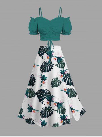Jupes Graphiques > Jupe hawaïenne fendue à imprimé de fleurs tropicales grandes tailles