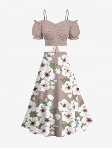 Jupe hawaïenne fendue à imprimé fleurs et feuilles grande taille - Bronze - Xs