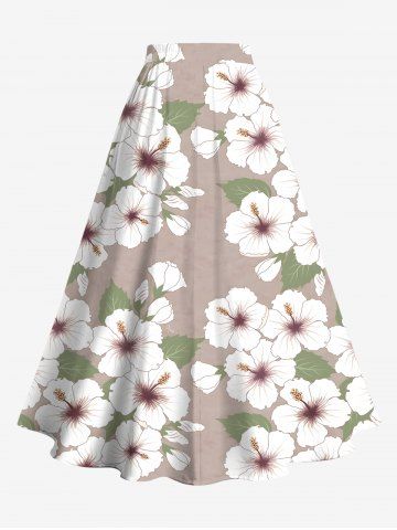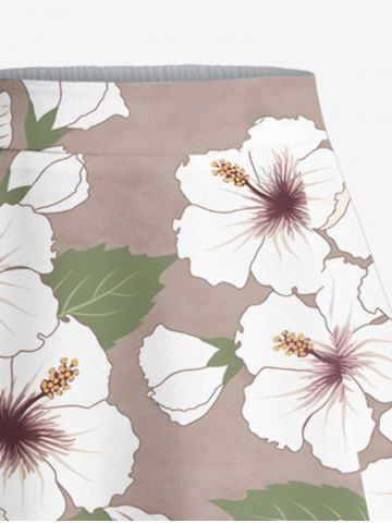 Jupes Graphiques > Jupe hawaïenne fendue à imprimé fleurs et feuilles grande taille