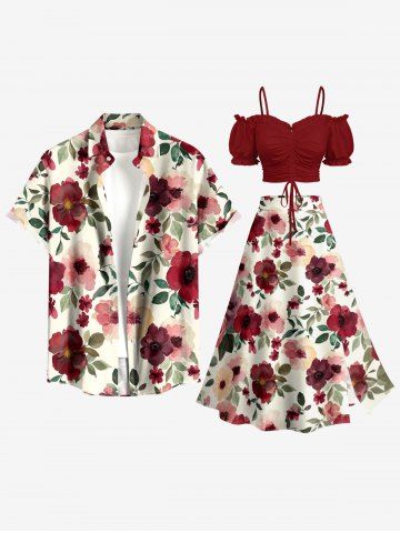 Jupe hawaïenne fendue à imprimé fleurs et feuilles grande taille - Rouge Foncé - 1x