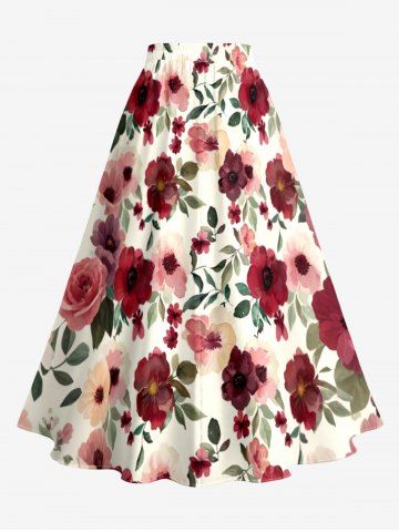 Jupe hawaïenne fendue à imprimé fleurs et feuilles grande taille - Rouge Foncé - 6x