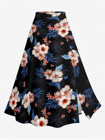Jupes Graphiques > Jupe hawaïenne fendue à imprimé tropical fleurs d'hibiscus grandes tailles