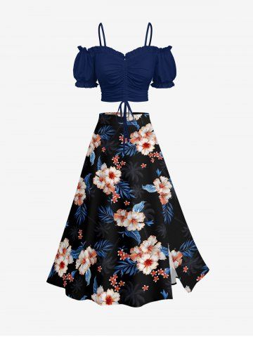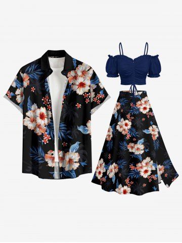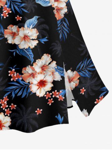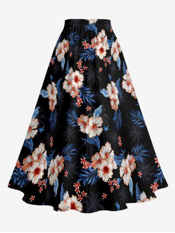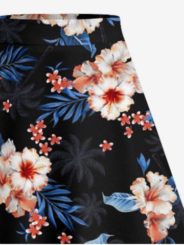 Jupe hawaïenne fendue à imprimé tropical fleurs d'hibiscus grandes tailles - Noir - Noir