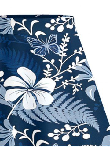 Jupe hawaïenne fendue à imprimé tropical fleurs et feuilles grande taille - Bleu Profond - Xs